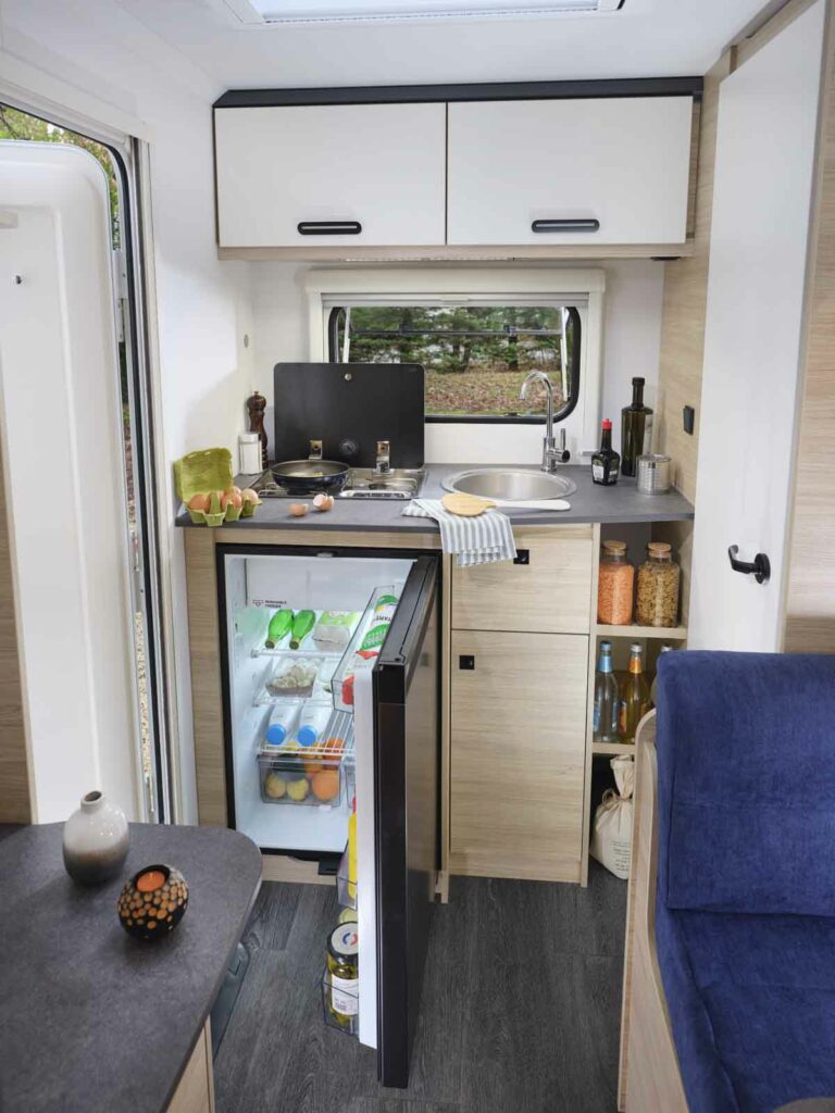 You will love living, cooking, and moving around in this perfectly arranged caravan. The kitchen area offers a 120 cm worktop.